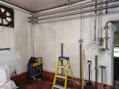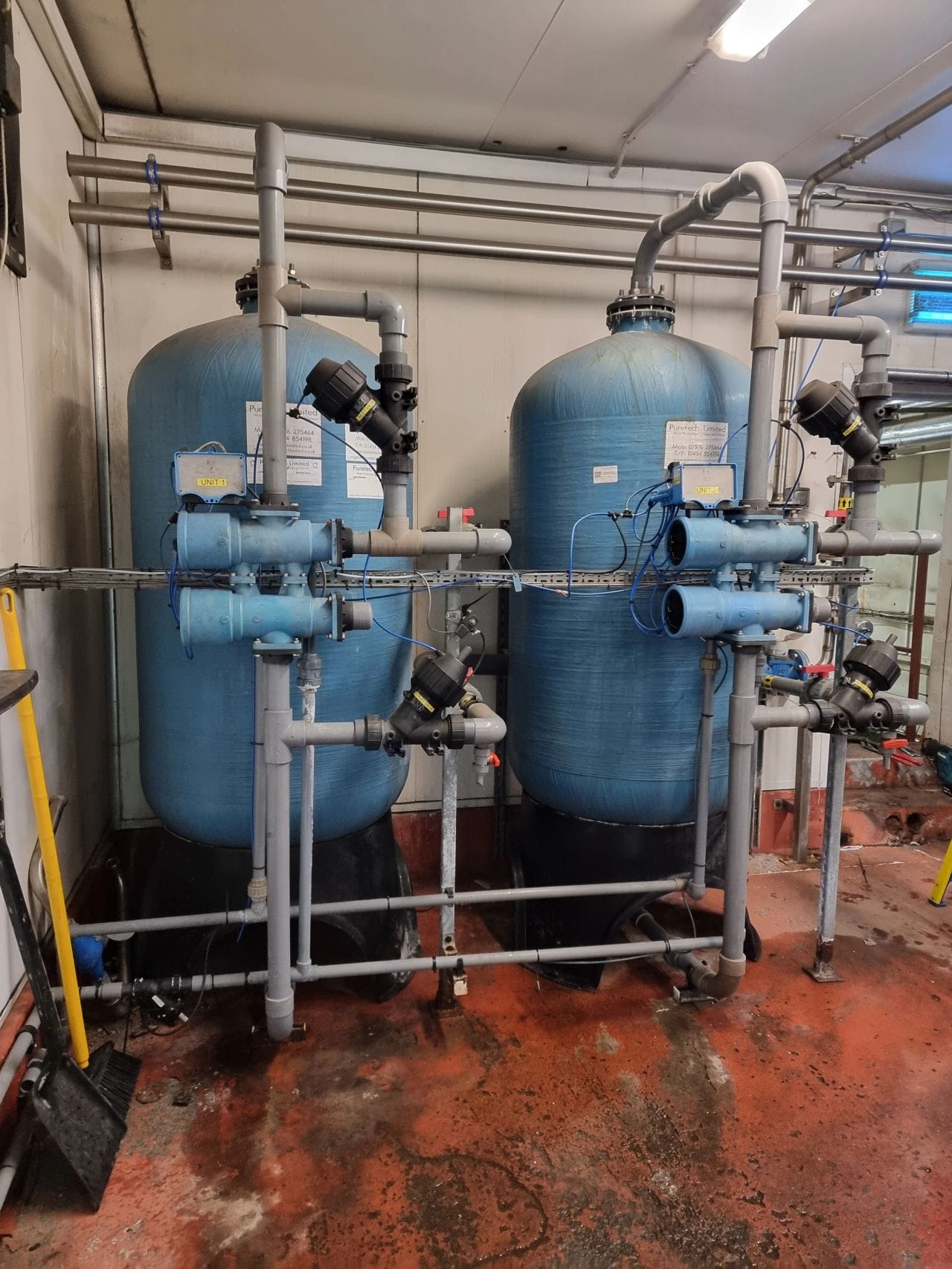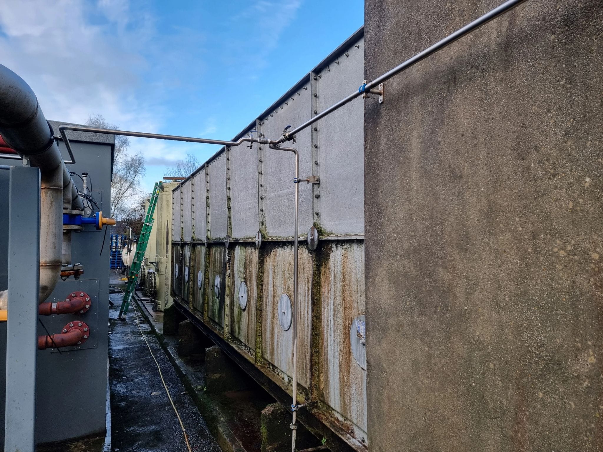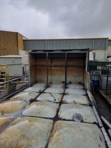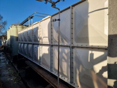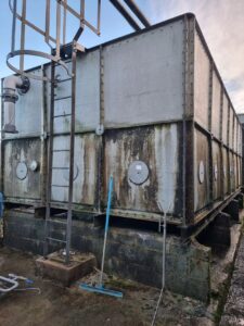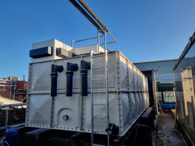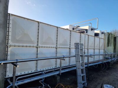 Last week was a very busy week for Puretech and one of our Clients. First ever time site had stopped production for 5 days for a shut down. First was the removal of a 44m3 very old and badly leaking CWST and the installation of a new 48m3 CWST. All pipe work upgraded to stainless steel, including 1x mains water and 2x well water inlets. New CWST was cleaned and chlorinated before going online. Second job was upgrading there existing 20 year old water softener, with a new 750 litre Duplex. All works completed within the dead and factory back in production = a very happy client.